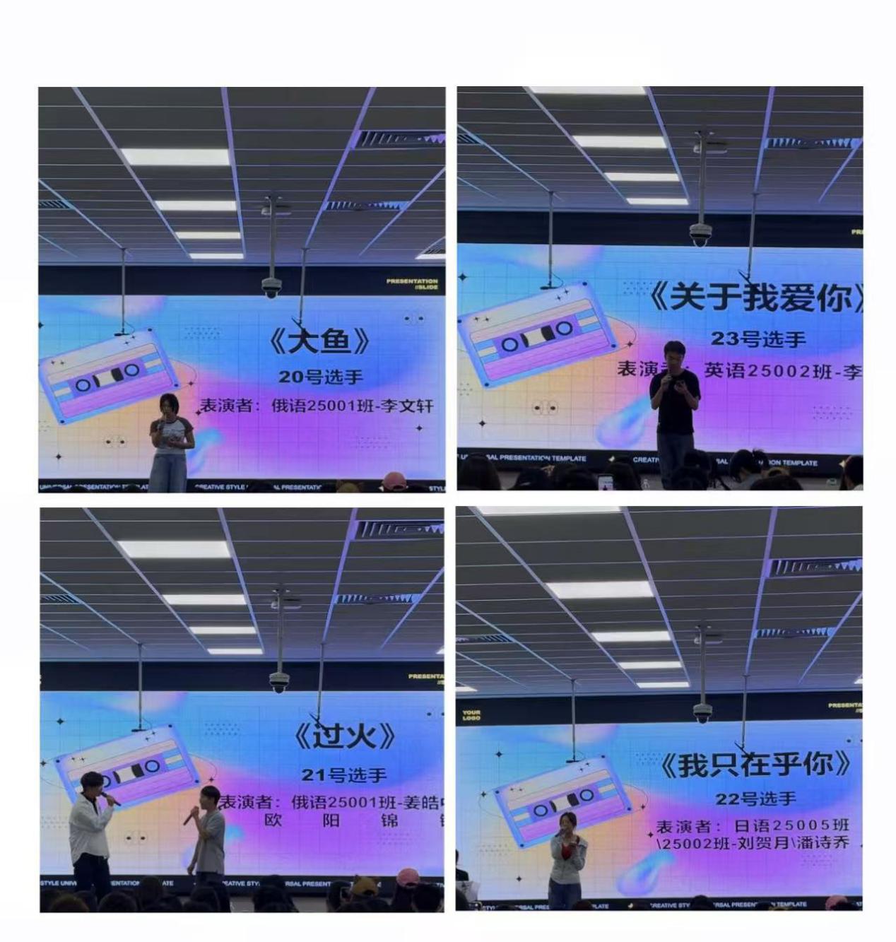 音乐节上半场,新生选手们依次登场,用歌声点亮了暮色。从温柔抒情的民谣到活力满满的流行曲,不同语言的演绎、各异风格的表达,每一首演唱都藏着对舞台的热爱与勇气。台下的掌声此起彼伏,成为了最温暖的伴奏,让每一位初次登台的新生都卸下紧张,尽情绽放。