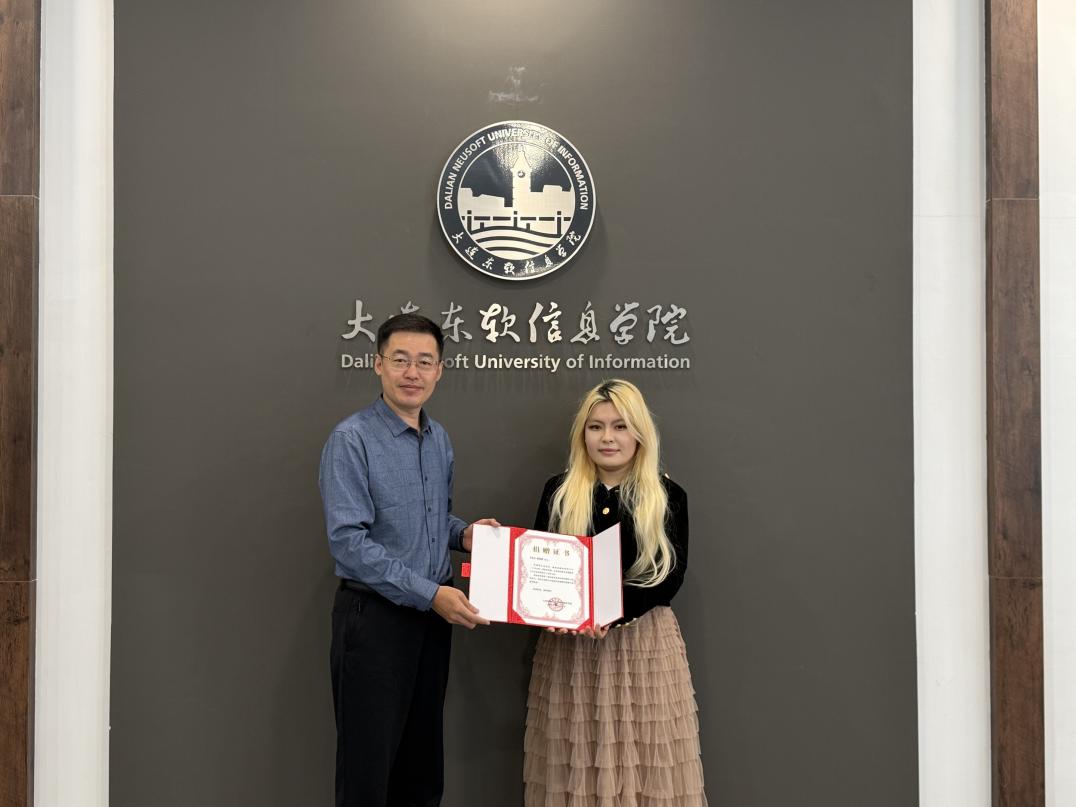 校友讲堂结束后,《睿尔英语》联合创始人姜佳妤校友向母校捐赠了价值10万元的教学资源,以行动回馈母校培育之恩。外国语学院张翼院长出席捐赠仪式,并向姜佳妤校友颁发捐赠证书。这份深情厚谊,不仅为学院的教学发展注入了新动力,更彰显了东软学子饮水思源、薪火相传的精神。