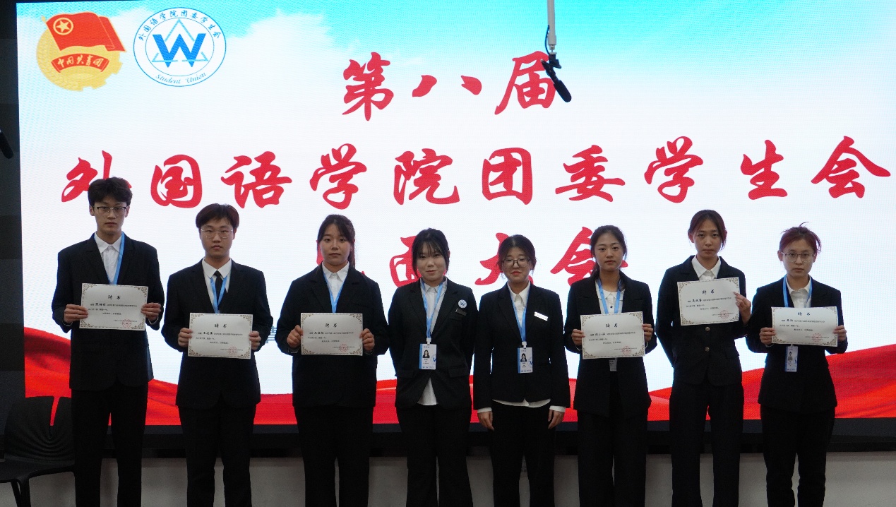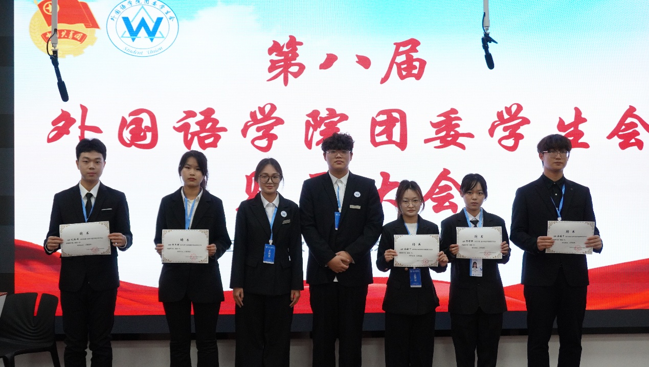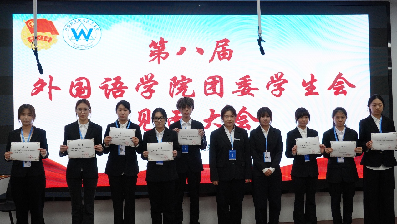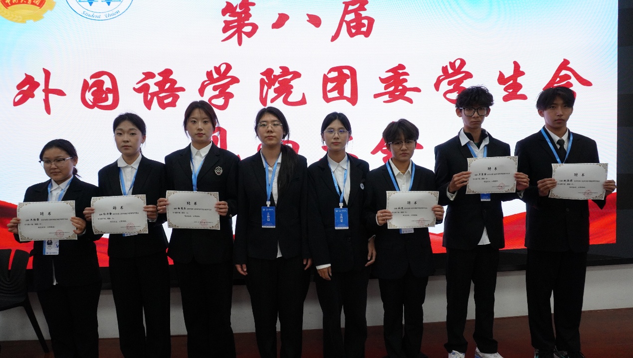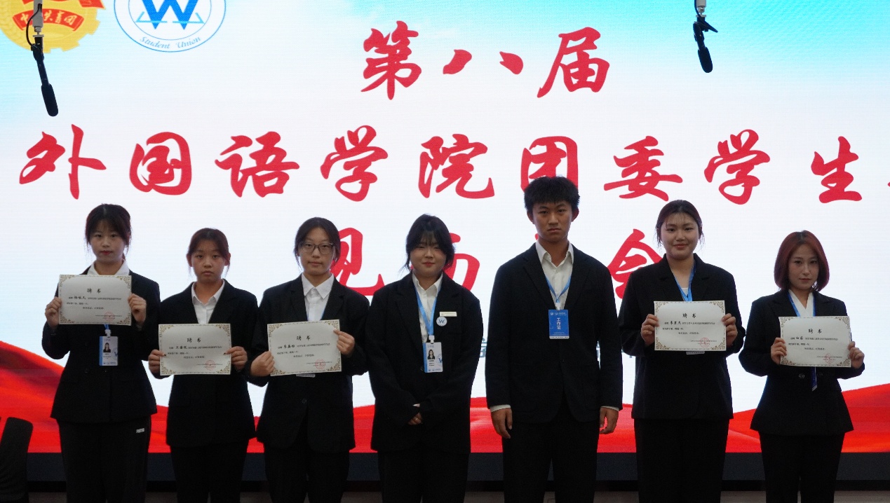 大会现场,外国语学院团委书记于思琦老师宣读新一届学生骨干任职名单并作总结讲话,为新征程注入指引与期许。接过证书的瞬间,不仅是身份的正式确认,更是组织信任与责任使命的传递。各部门部长、副部长亲自为骨干们颁发证书,见证这份光荣的交接。