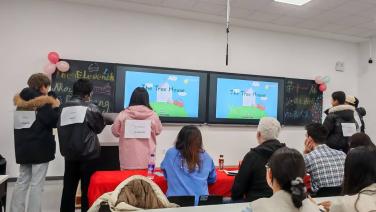 来自不同班级的参赛队伍依次登场,每组都带着独有的活力与创意。从《青春变形记》的灵动、《疯狂动物城》的鲜活、到《寻梦环游记》的温情,《小猪佩奇》的童趣、再到《头脑特工队》的细腻、《Smurfs:TheLostVillage》的奇幻,选手们都以扎实的口语功底、精准的情绪把控,将角色魅力诠释得恰到好处。
