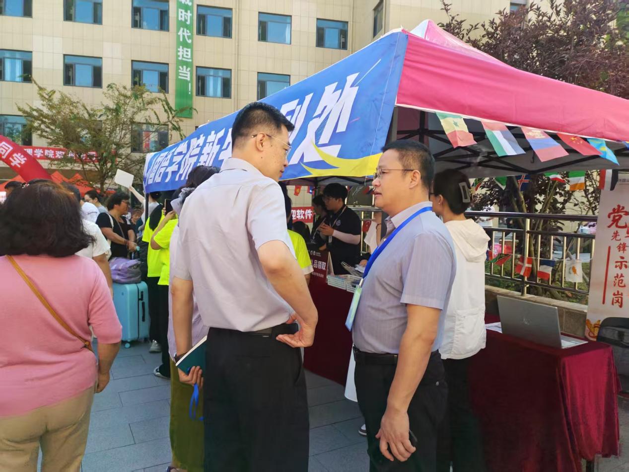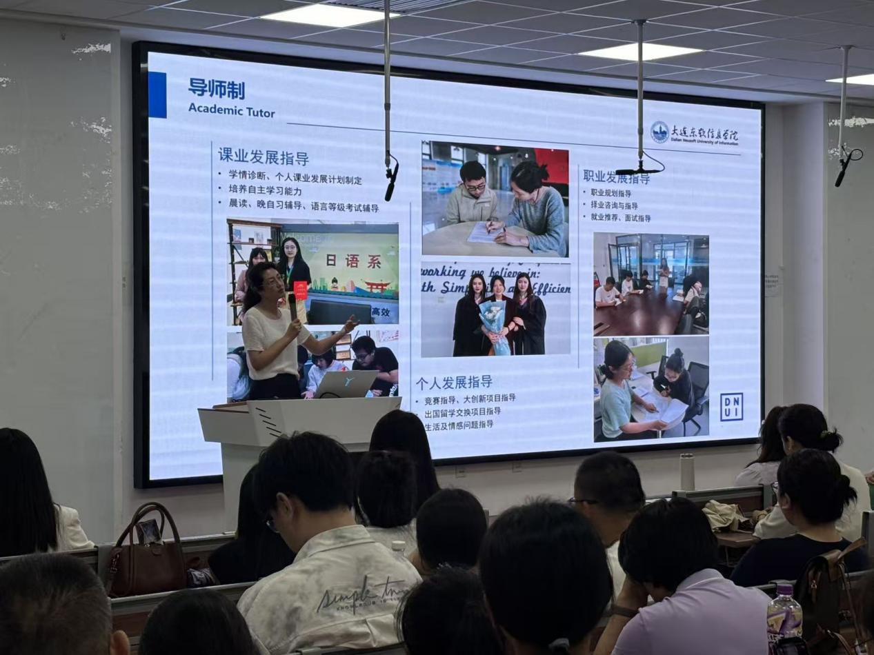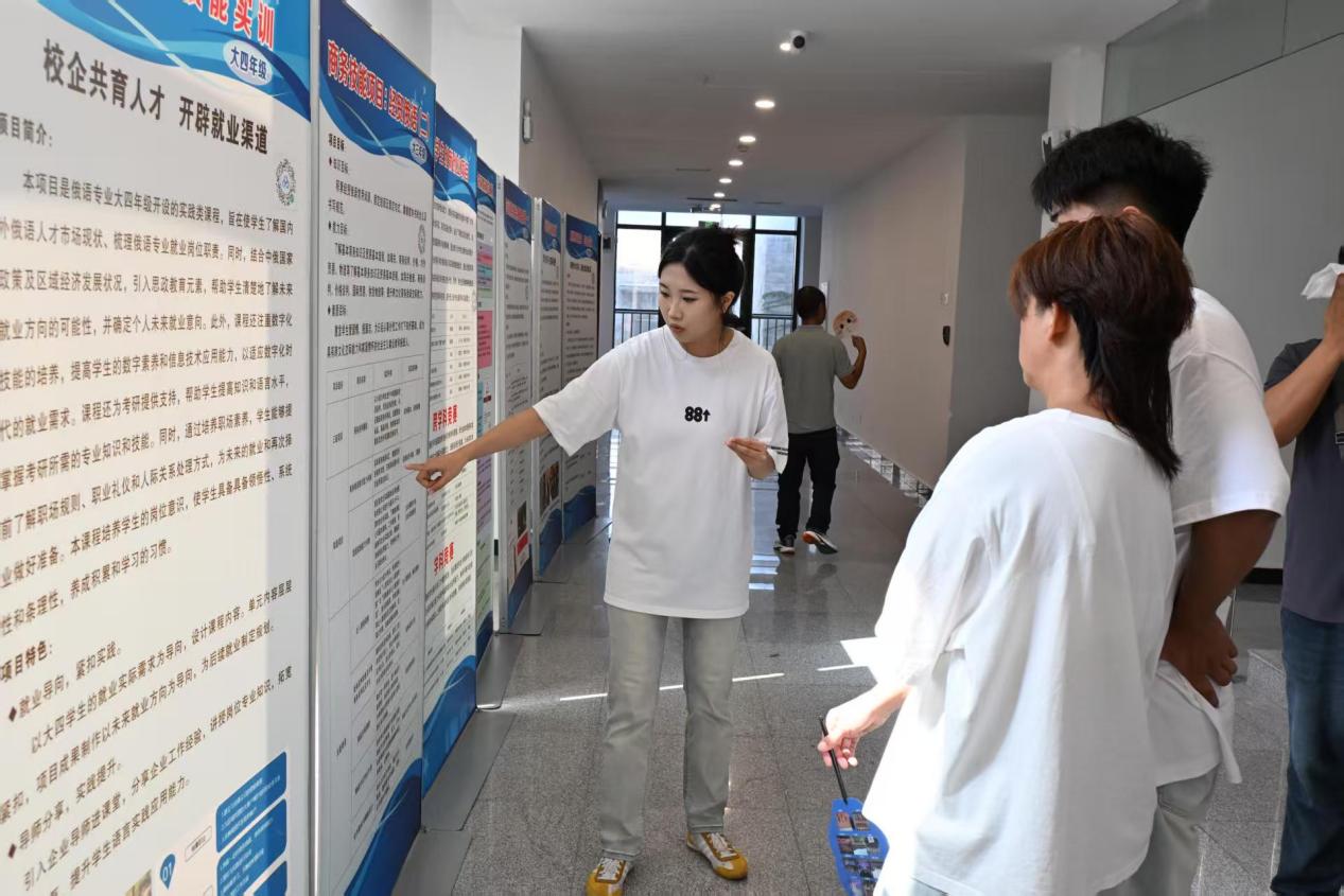 迎新当日,学院同步召开新生家长见面会与实践教学成果展,搭建家校沟通桥梁。外国语学院院长张翼、党委书记王新明、英语教学部部长王姗姗老师、日语和俄语教学部部长佟玲老师、团委书记于思琦老师、新生素质教师郭清老师及外国语学院其他素质教师与家长面对面,介绍办学理念、专业特色与培养规划,解答学业、生活、就业相关疑问。会上,学院提出“家校同心,聚力育人”,计划建立长期沟通机制,家校共护新生成长;家长积极分享教育心得、表达信任期待,现场氛围融洽,凝聚起协同育人的温暖力量。