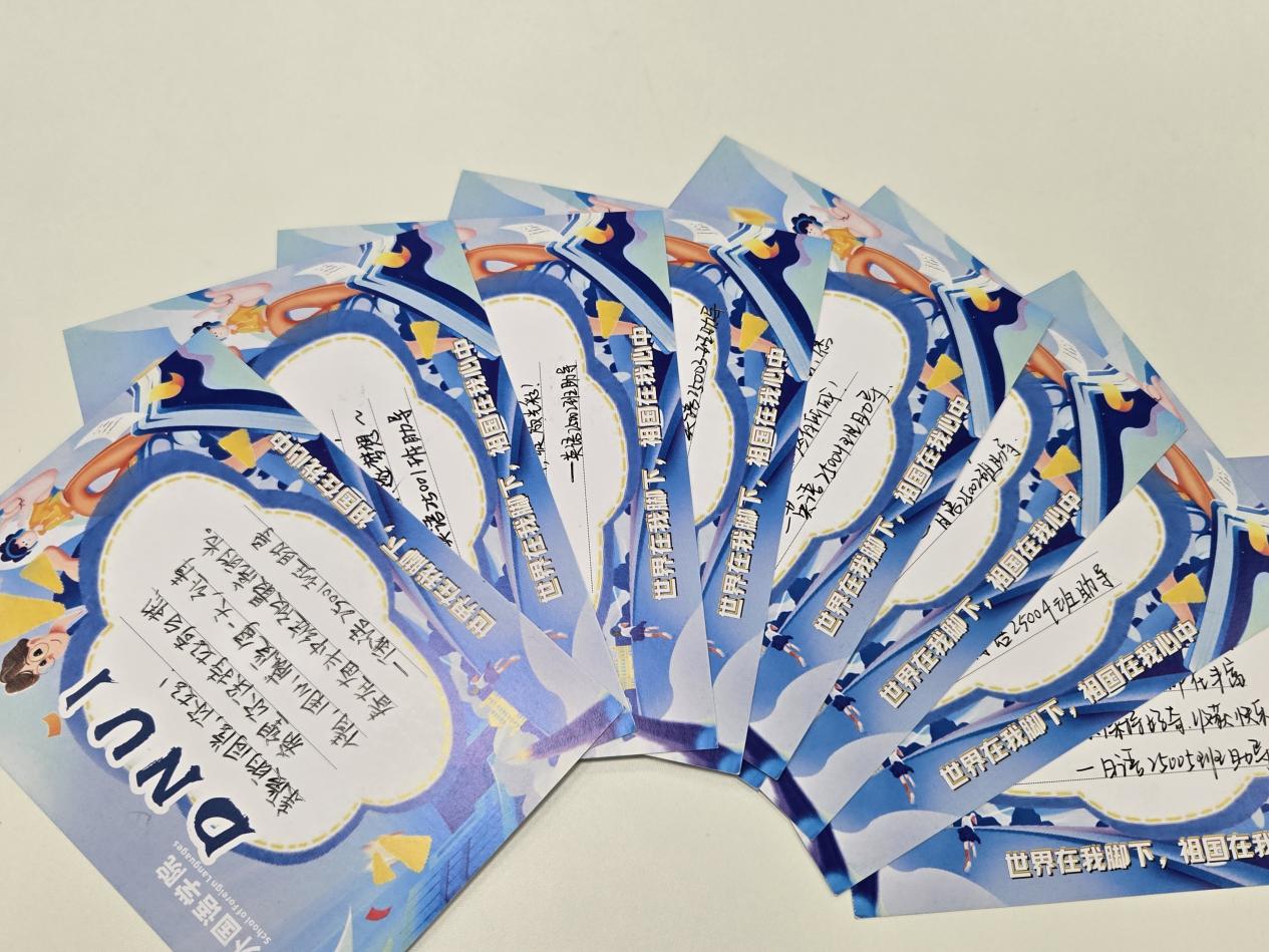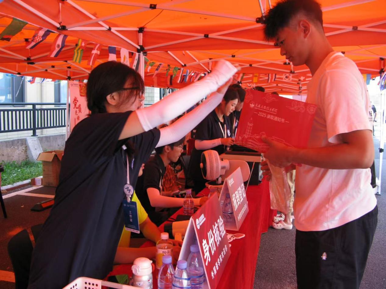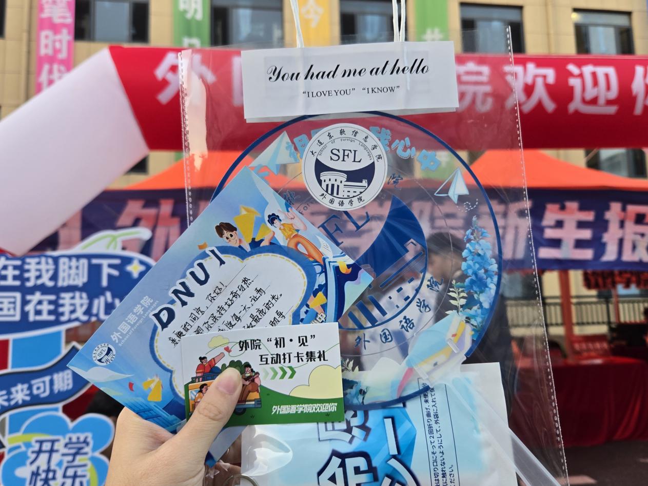 报到处的每一处细节,都藏着外国语学院特别的心意:学生助理辅导员提前为每位新生亲手写下的贺卡,纸上满是学长学姐真挚的欢迎与祝福;伴手礼中专门为大家定制的文创扇格外用心,点缀着具有文化代表性的特色元素,体现出学院对新生细致入微的关怀。还有那些满载欢迎之情的小礼品,它们或许微小,却足以让初来的你,感受到一份如家般的温暖与牵挂。