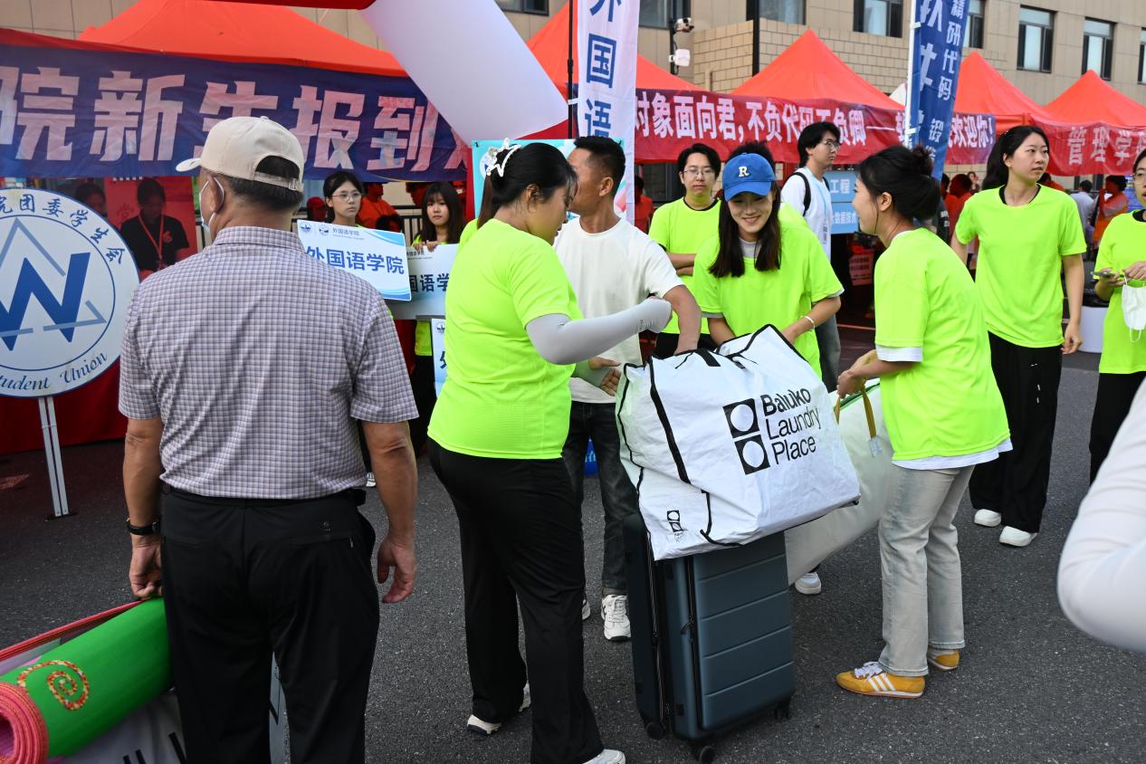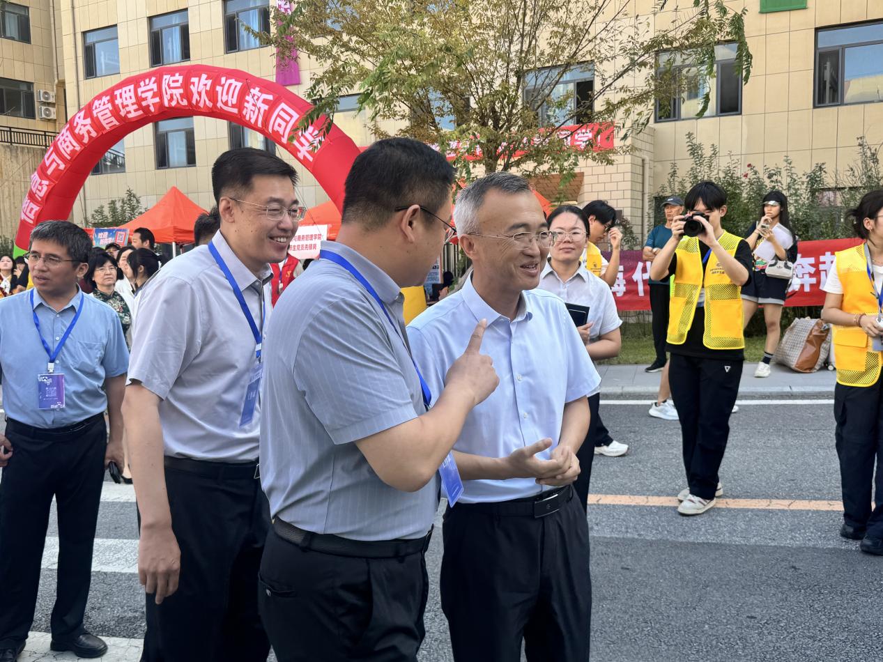 迎新当天,校长郭权一行亲临迎新现场,细致了解报到情况,慰问一线工作人员和志愿者,并亲切与新生、家长交谈,关怀入学感受和需求,勉励同学们尽快适应大学生活、勇敢逐梦。
