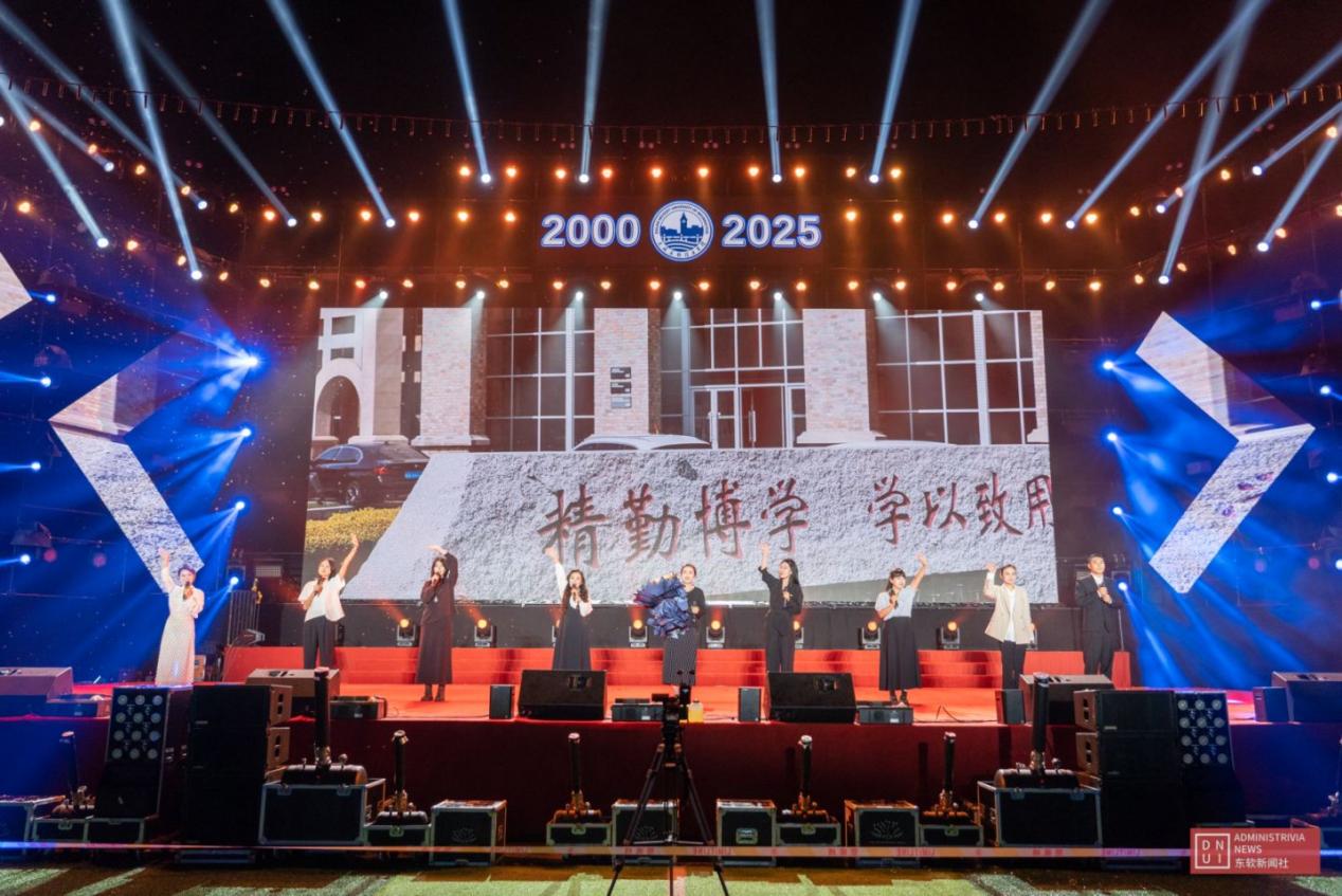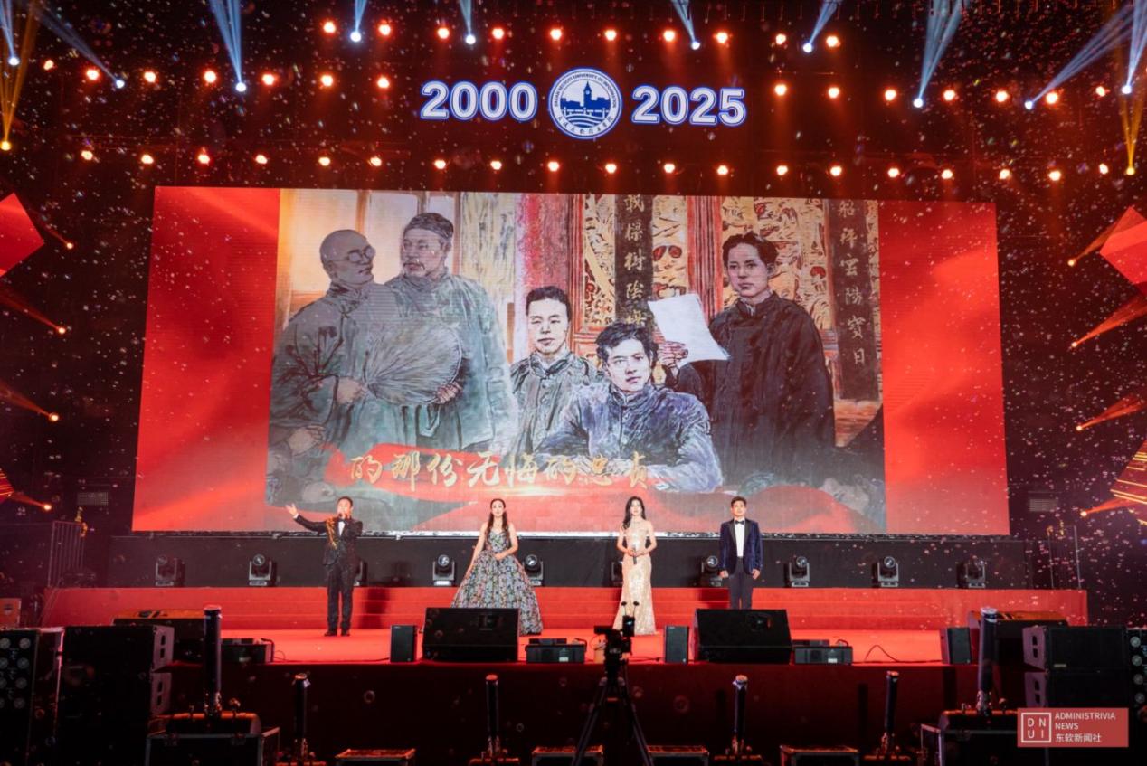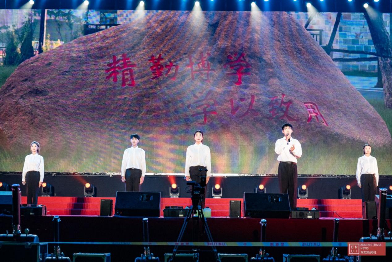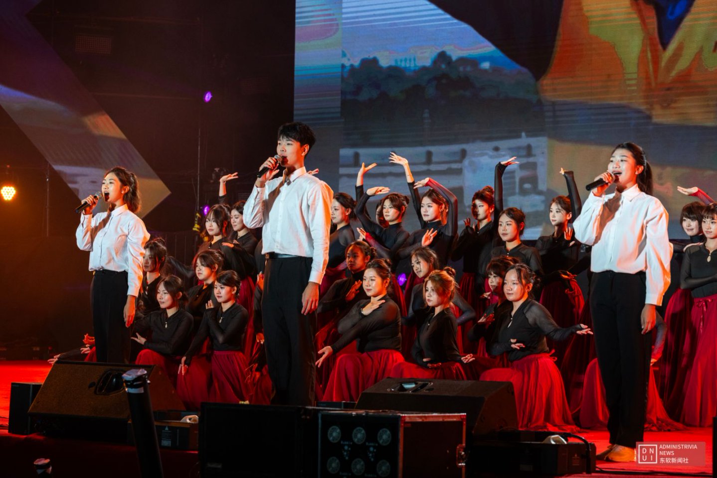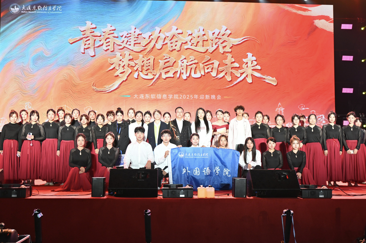 晚会在暖意融融的歌曲《东软赠予我》中升温。外国语学院素质教师郭清老师代表学院,与各学院新生素质教师同台献唱。郭老师用真挚动人的歌声,向2025级新生传递了师长的美好祝愿,展现了外国语学院教师的亲和风采。