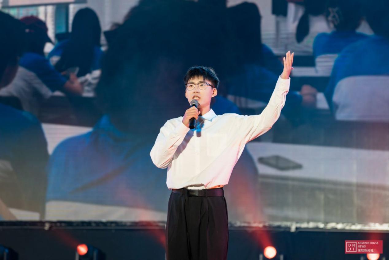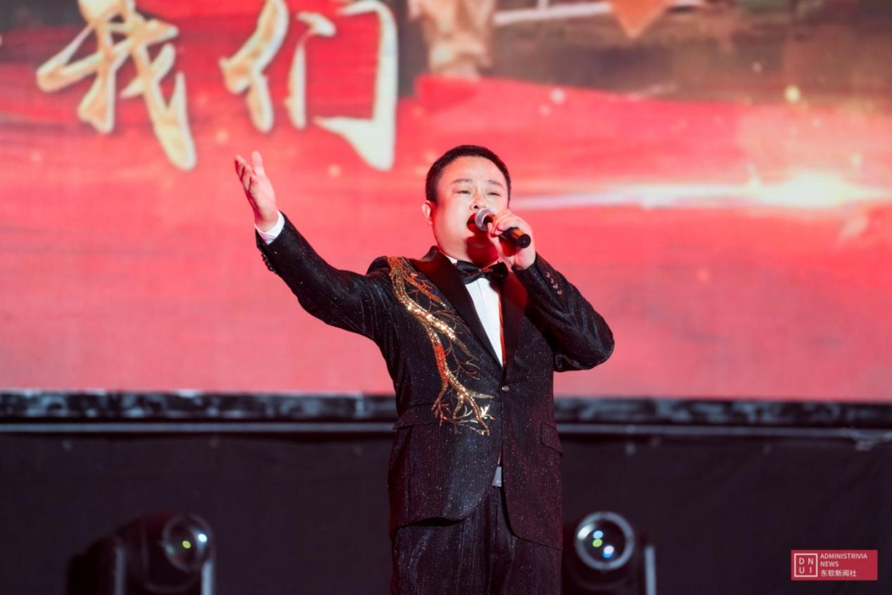在由软件学院、信息与商务管理学院、外国语学院及校工会联袂献演的压轴舞台剧《传承铸魄,奋进担当》中,外国语学院党委书记王新明书记倾情献唱,他用生动的表演,传递出对学子们的殷切期望。