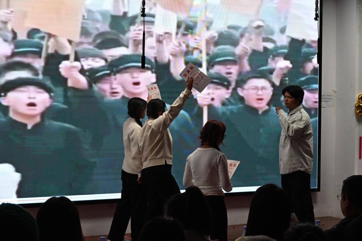 日语25002班团支部的《战火中的大学生》,带大家重回七十余年前的烽火岁月,那些以青春为盾、以信仰为矛的救国青年,用担当与坚守成为了青春最好的注脚,让现场观众深受触动。