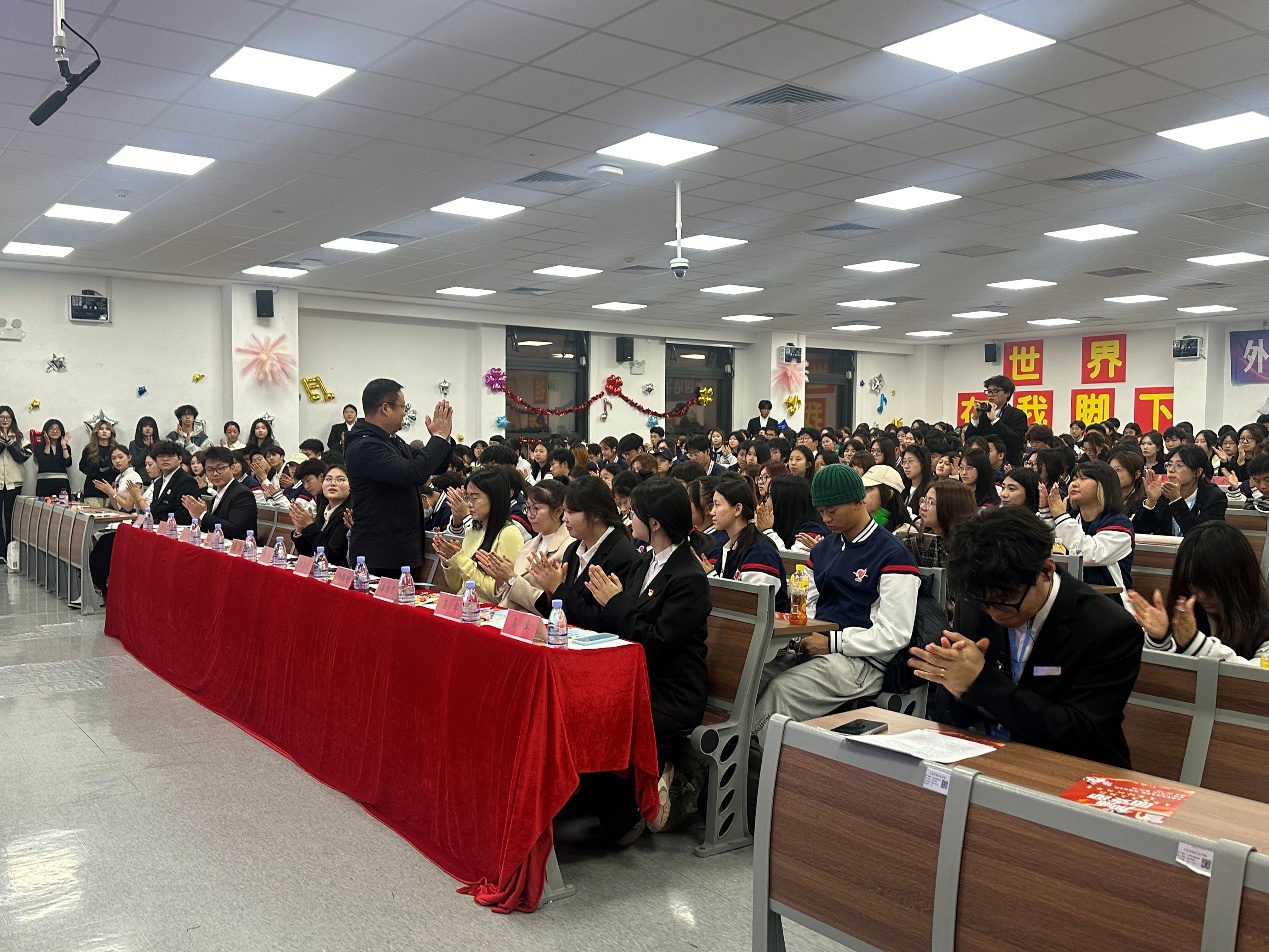 活动现场座无虚席,热烈中透着庄重。出席本次活动的嘉宾有:外国语学院党委书记王新明、团委书记于思琦老师、素质教师郭清老师与李悦莹老师;各二级学院团委学生会代表、第八届外国语学院团委学生会主席团及部长级成员,以及英语、日语、俄语各协会会长共同组成了本次活动的嘉宾阵容。各位嘉宾的到来,既为决赛增添了十足分量,也带来了暖心关怀,让参赛学子们倍感鼓舞、斗志昂扬。