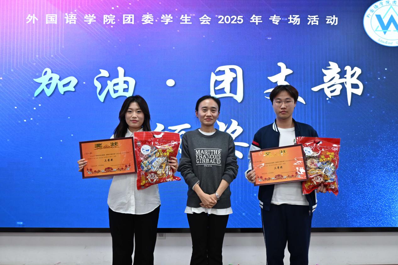 英语25004班团支部、日语25001班团支部凭借出色表现斩获三等奖,素质教师郭清老师再次上台颁奖。