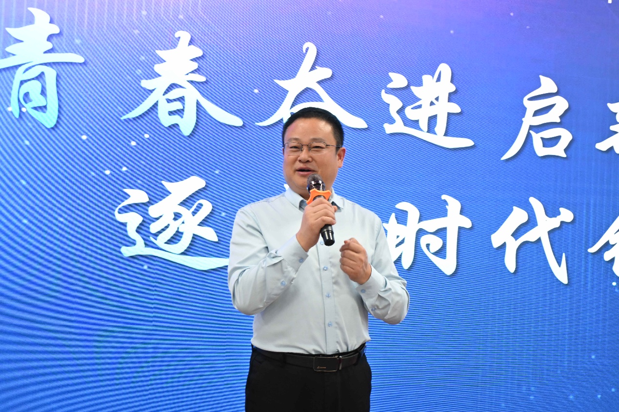 颁奖仪式结束后,外国语学院党委书记王新明上台发表讲话。他首先对本次“十佳歌手”决赛的圆满落幕表示热烈祝贺,对所有获奖选手的精彩表现给予高度肯定,称赞同学们在舞台上展现出的自信风采与追梦勇气,正是青春最动人的模样。同时,他也向为活动顺利举办辛勤付出的团委学生会成员、评委老师及所有工作人员表达了衷心感谢,感谢大家用细致筹备与全力配合,为全院师生呈现了一场高质量的文化盛宴。最后,王新明书记鼓励同学们始终保持对生活的热爱、对艺术的追求,将这份热忱与执着融入学习与成长的每一个瞬间,在青春的赛道上勇敢发声、大胆追梦,不断突破自我、绽放更多可能。