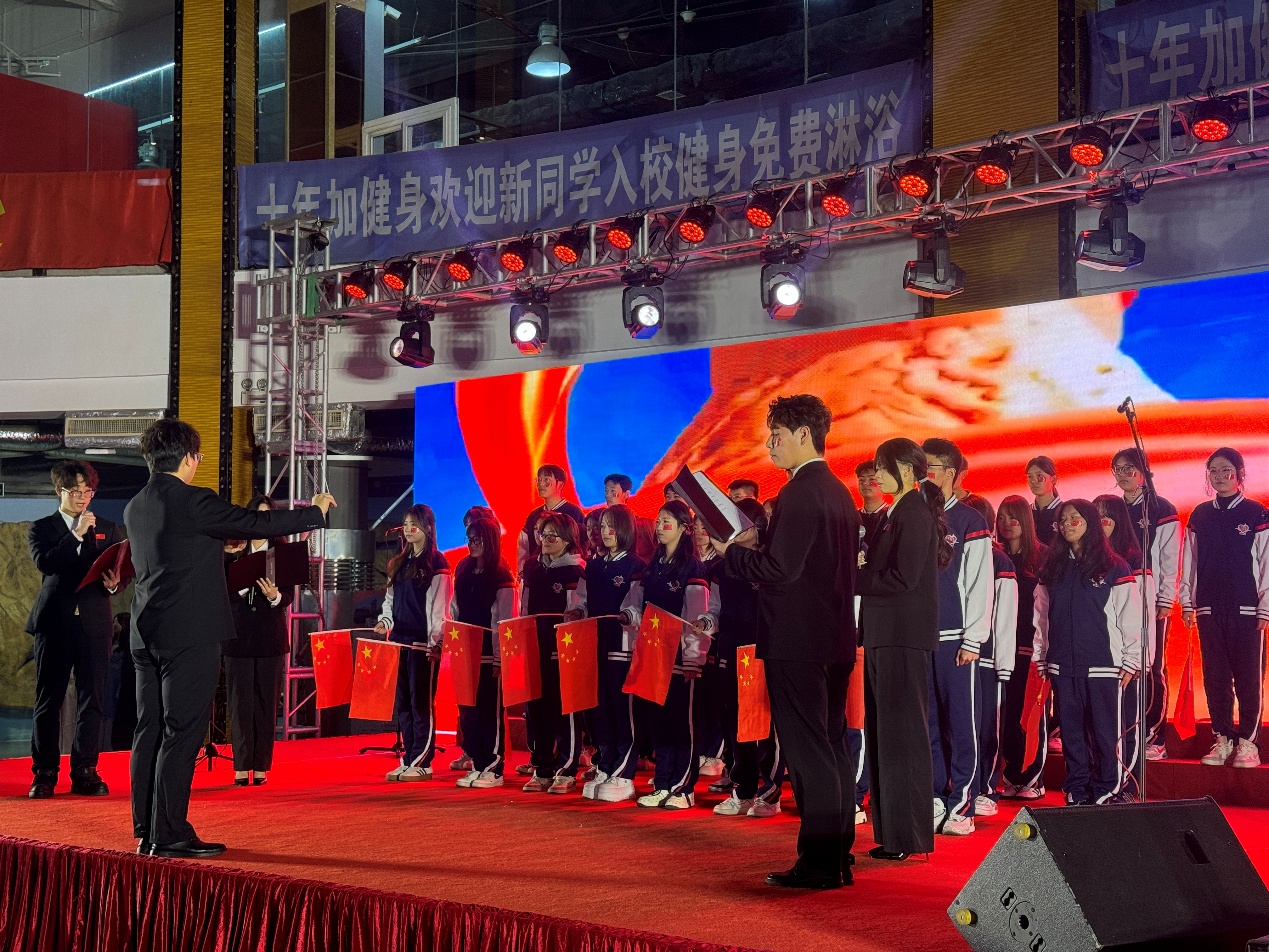 红歌合唱环节正式展开,外国语学院的队伍率先登场,以一曲《我爱你,祖国》惊艳全场。他们用雄浑与婉转交织的嗓音,将青春的赤子之心融入歌声。演唱间隙穿插的深情朗诵,字里行间满是时代青年对祖国母亲最滚烫的心声。