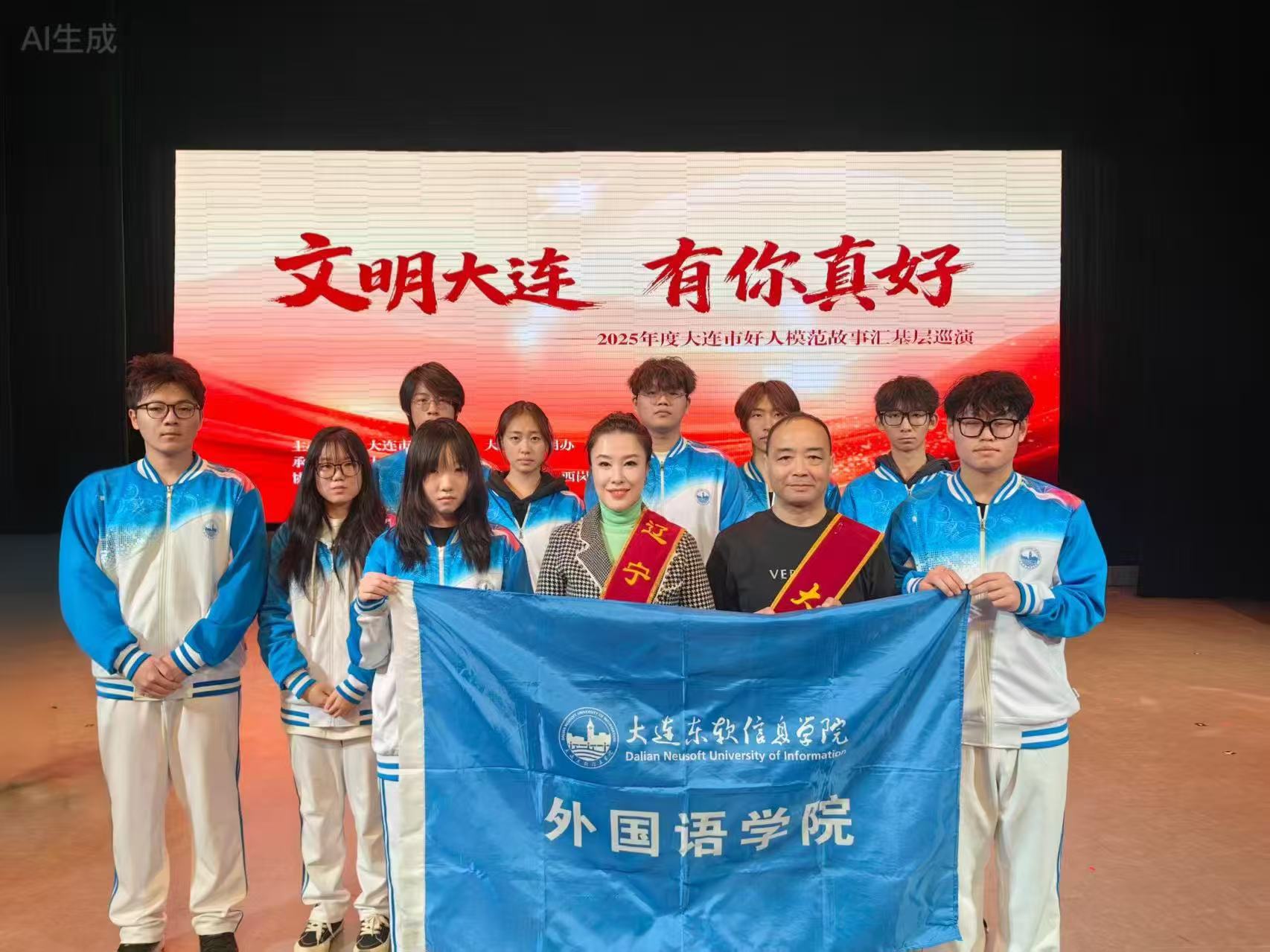 为深化文明城市建设认知,传递“大连好人”榜样力量,大连东软信息学院外国语学院入党积极分子与团员代表,受邀参与11月20日“文明大连有你真好”2025年度大连市好人模范故事汇基层巡演。此次活动中,全市各级道德模范和“身边好人”代表及市民代表500余人出席观看,巡演以道德模范和身边好人为原型,以群众身边的感人故事为素材创排情景剧,传递城市精神力量。