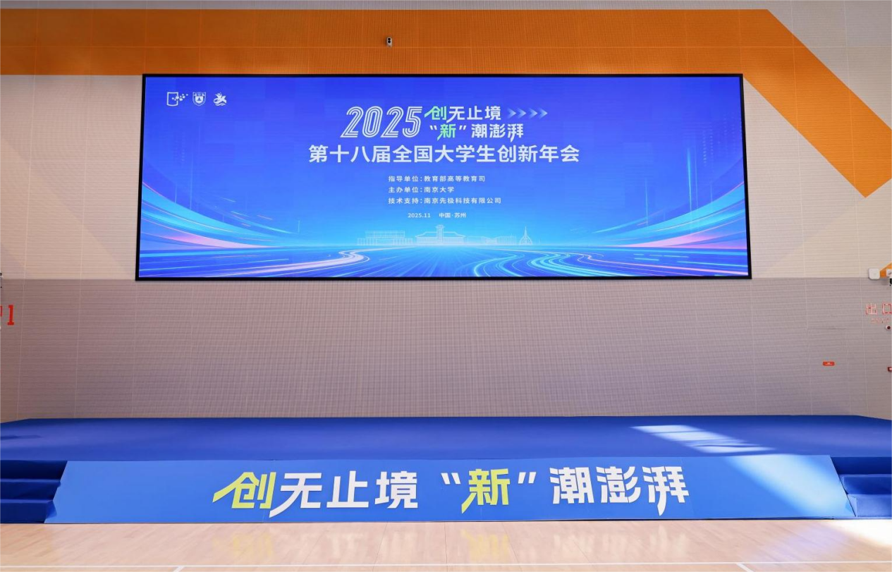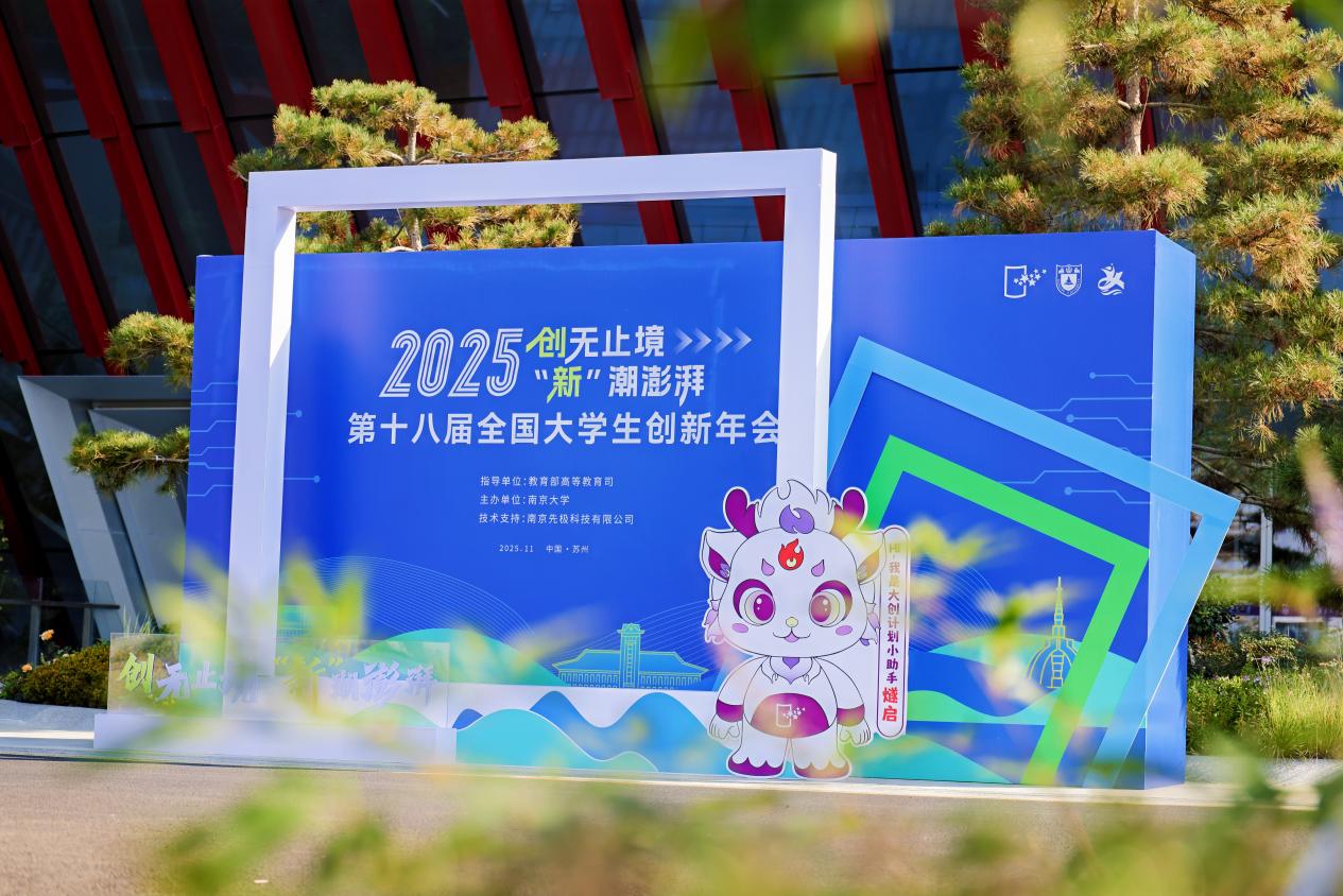 2025年11月21日至23日,第十八届全国大学生创新年会在南京大学苏州校区举办。本届年会以“创无止境·新潮澎湃”为主题,来自全国近300所高校的师生1500余人参会。此次第十八届年会共收到全国部属高校和地方教育主管部门推荐项目1030项。经过专家初评、“国创计划”专家工作组复选,最终遴选出学术论文200篇、改革成果展示项目250项、创业推介项目60项,共计510件作品参加“大创年会”现场展示。大学生创新创业项目改革成果展示交流化身“可触摸的未来实验室”,集中展示了来自全国高校的250项创新实践成果,现场科技氛围浓厚,人流如织,互动热烈。