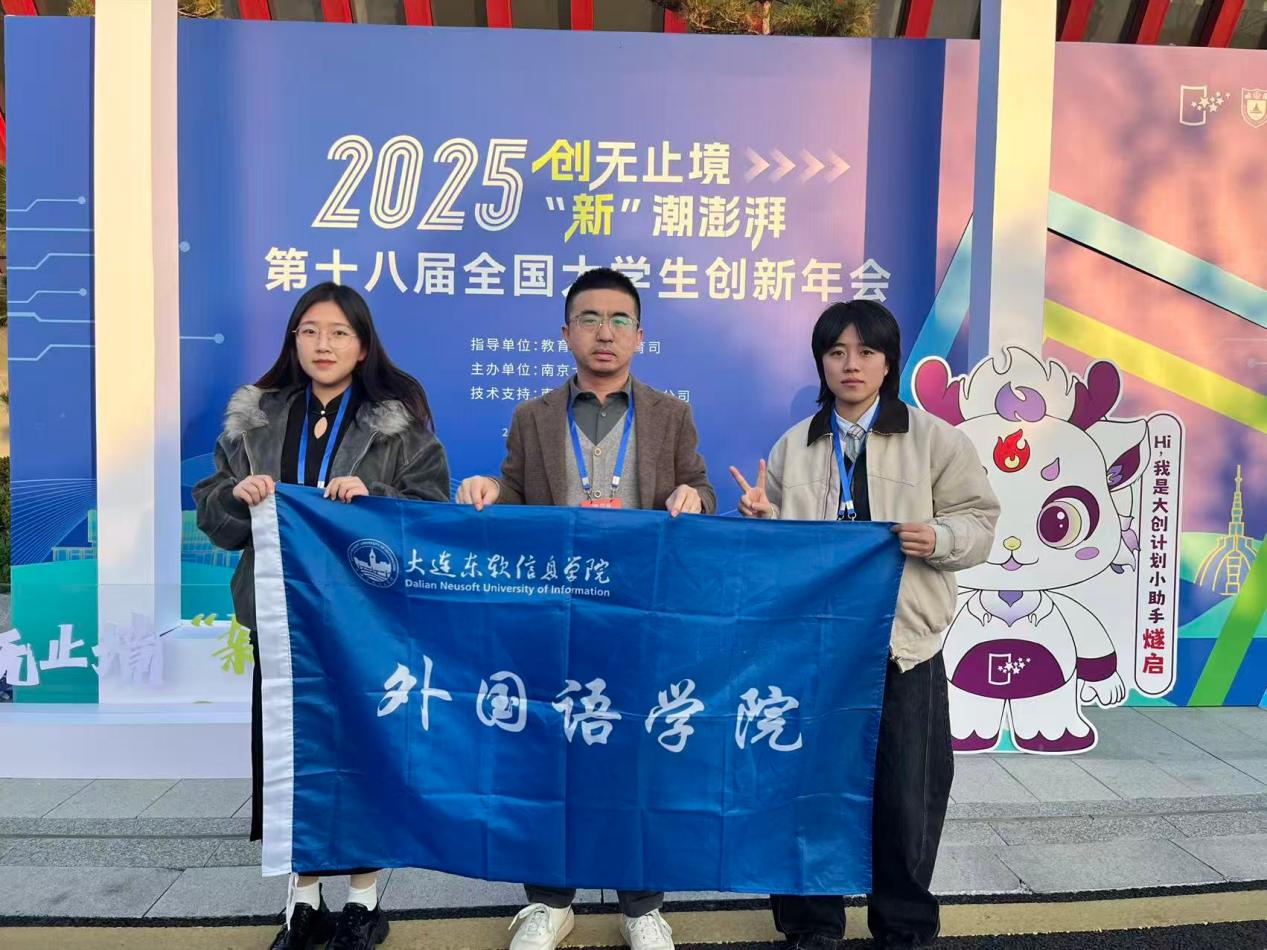 本次全国大学生创新年会由付立民老师带队,赴南京大学苏州校区参加改革成果展示交流。项目的成功入选与现场展示,不仅体现了外国语学院学子在传承非遗文化、推动创新融合方面的积极探索,更为学院创新创业教育工作增添了浓墨重彩的一笔,开启了我院在国家级创新舞台上不断突破、持续奋进的新篇章。