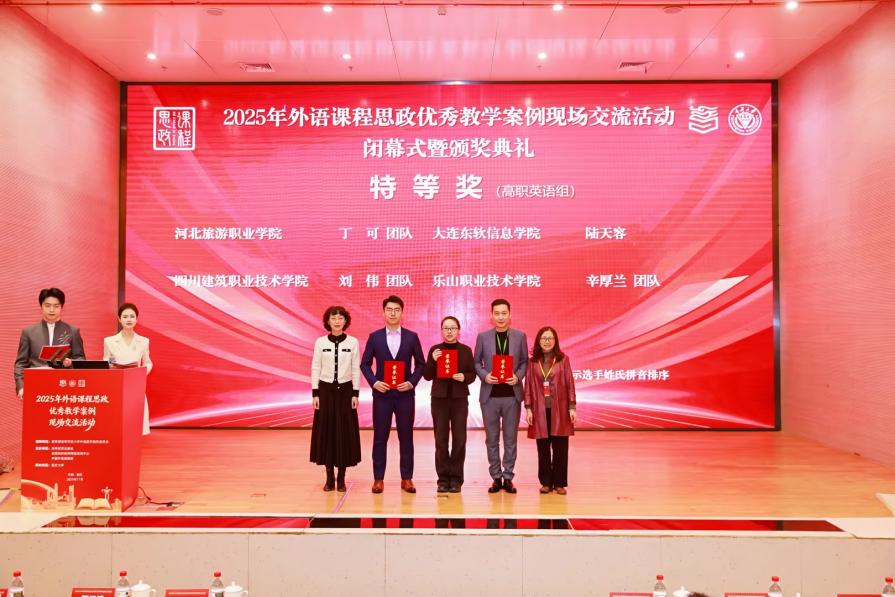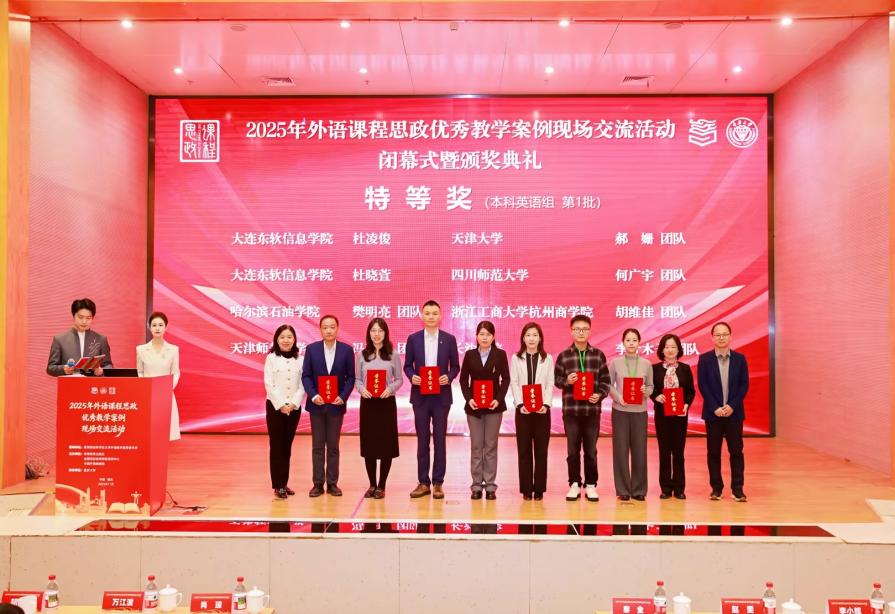 经过六个月的省赛选拔,杜凌俊、杜晓萱与陆天容三位老师以省赛特等奖身份代表辽宁省参加“2025年外语课程思政教学案例现场交流活动”全国总决赛,与来自西安交通大学、国防科技大学、天津大学等各省特等奖高校的优秀教师同场竞技。三位教师立足校情学情,结合学院课程思政建设经验,深入挖掘教学材料中的思政元素,将社会主义核心价值观、科学精神、工匠精神等有机融入教学设计,并运用信息技术提升教学效果,充分展现了我院教师对课程思政的深刻理解与扎实的教学能力。最终,杜凌俊、杜晓萱老师分别获得“本科大学英语组”全国特等奖,陆天容老师获得“高职英语组”全国特等奖,特等奖获奖人数与比例均居全国首位。
