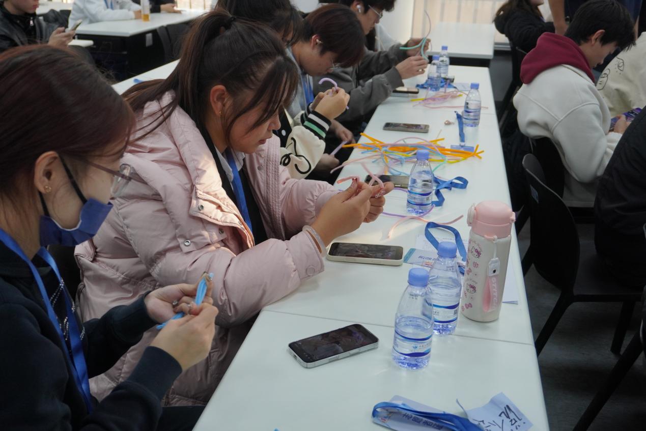 秋意渐浓的午后,阳光透过博川校区E8-104的玻璃窗,洒在一张张专注而柔软的脸庞上。这里正在进行的,不仅是一场手工活动,更是一次跨越理解与关怀的温暖奔赴——“以手‘扭’心,筑梦同行”扭扭棒创意手工创作。在宁静与专注中,绽放出别样的情感温度,一场名为“以手‘扭’心,筑梦同行”的手工创作活动,让普通的教室变成了创意与爱心交织的温暖工坊。