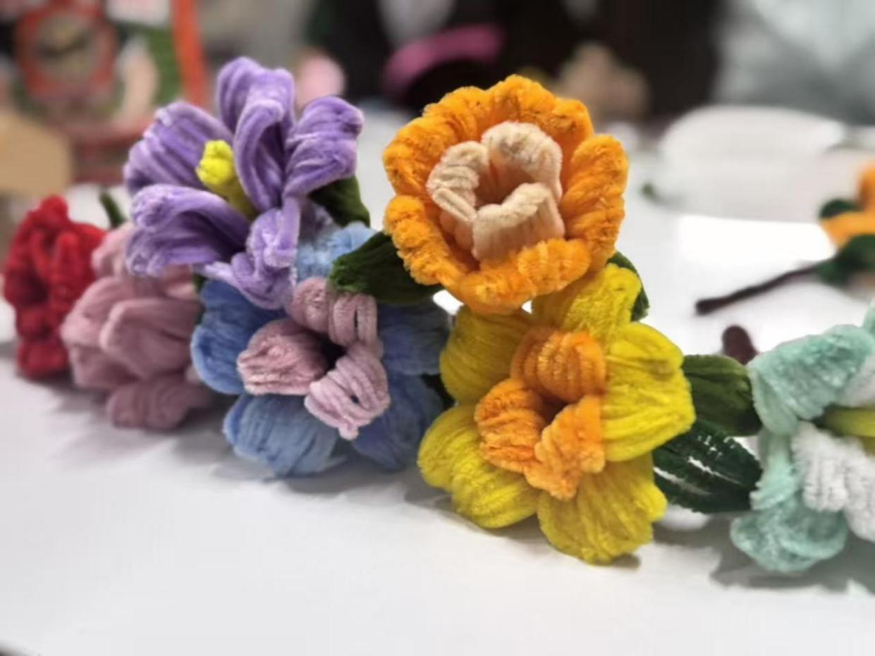在“冬日巧手·扭扭生花”活动中,我们俯身专注,将彩色扭扭棒缠绕、塑形。当普通的绒条在指尖绽开为朵朵小花,创作带来的不只是惊喜,更是温暖宁静的疗愈感。在互相请教与分享中,我们收获的不仅是作品,更是一份专注的投入和彼此连接的温度。