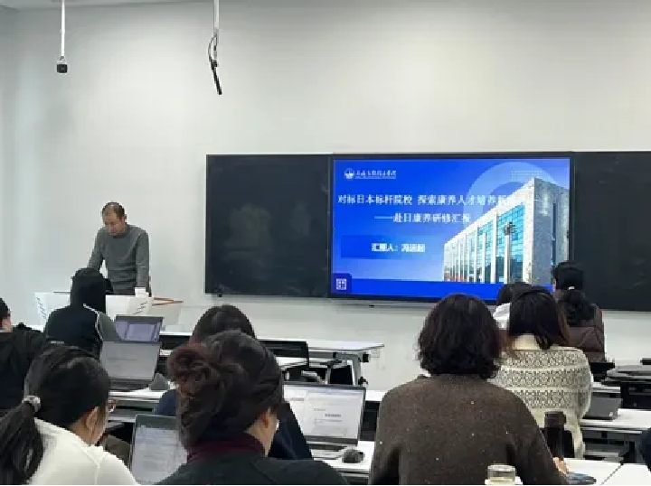 近日,外国语学院日语与俄语教学部特邀健康学院赴日研修教师冯运起,在博川校区作题为《对标日本标杆院校,探索康养人才培养新路径》的专题分享。冯老师结合在日研修期间的深入学习和实地调研,系统介绍了日本康养介护体系的发展历程、教育模式及人才培育机制,为我校相关专业建设与人才培养提供了宝贵的国际经验与借鉴。