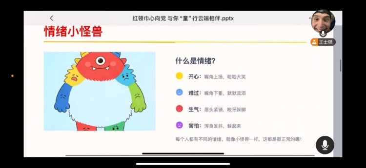 在参加了“红领巾心向党”云端陪伴实践活动后我收获了满满的感动。与少先队员小朋友的交流让我意识到,哪怕是一次短暂的陪伴,也能在孩子心中播下红色的种子。作为新时代大学生,能用所学所长为少先队员的成长贡献一份力量,我感到无比自豪。
